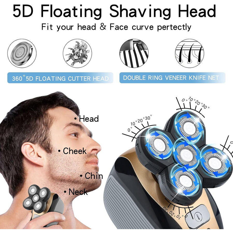 Aparat fara fir de ras, barbierit si tuns, 6 lame, 3 capete interschimbabile, 5 accesorii, IPX6, 600 mAh, USB, 9 x 7.5 x 8 cm, negru
