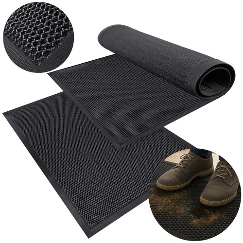 Covoraș de intrare, covoraș exterior 60x90cm cu structură 3D puternică din cauciuc și bază antiderapantă. Tehnologia curățeniei începe de la prag. Acest covoraș oferă protecție inteligentă împotriva murdăriei, umezelii și dezordinii, ideal pentru utilizare după plimbări, muncă în grădină sau în magazine.