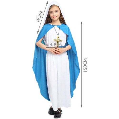 Costumul Mariei este un set traditional si atemporal care infatiseaza figura Mariei, mama lui Isus. Rochia lunga albastra si alba va fi perfecta pentru grajdul din Betleem. Datorita acesteia, copiii vor simti magia Craciunului asumand rolul acestui personaj demn si venerabil.