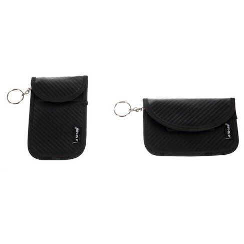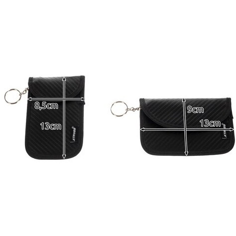 Set 2 husa protectie antifurt pentru chei si carduri, Cu carabiniera, Inchidere velcro, Neagra, Blocarea undelor radio 10 - 30 kHz, 9 x 13/ 8.5 x 13 cm