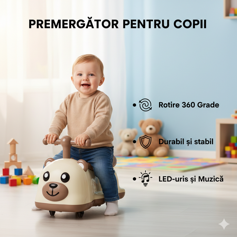 DESIGN SIGUR - Această mașinuță de jucărie este echipată roti rotative la 360°, rulmenți îmbunătățiți, astfel încât copiii se pot mișca fără efort înainte, înapoi sau se pot răsuci în orice direcție.