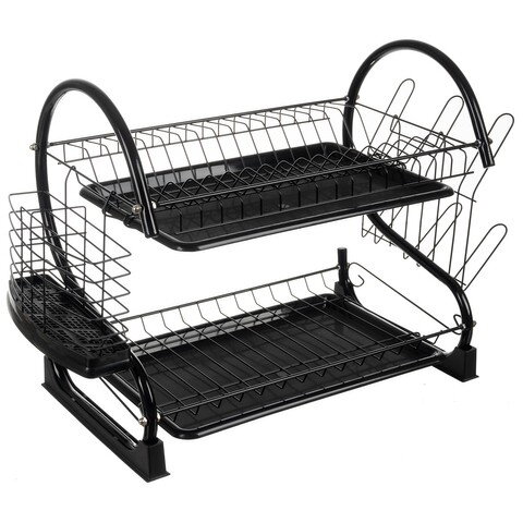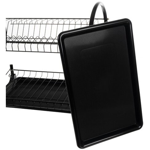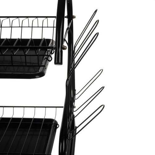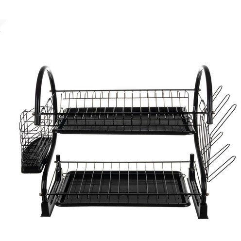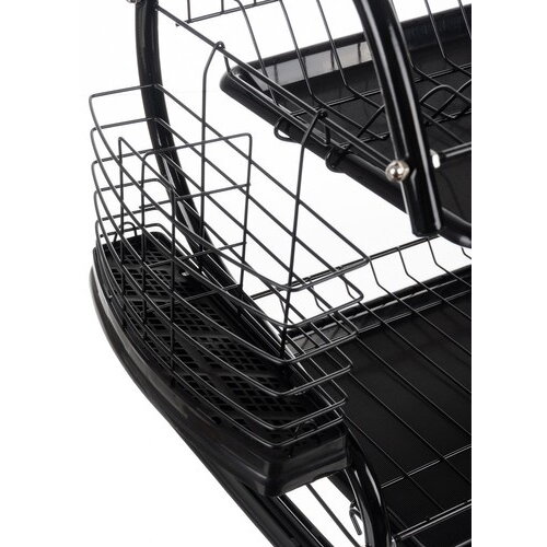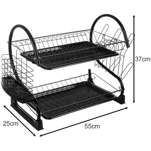 UȘOR DE CURĂȚAT ȘI UTILIZAT - fiecare nivel al uscătorului are tăvi de colectare a picăturilor cu margini înalte, fabricate din polipropilenă de înaltă calitate, care colectează eficient apa, împiedicând-o să se scurgă pe blatul de bucătărie. Aceste tăvi pot fi ușor de îndepărtat și spălat, ceea ce face ca menținerea curățeniei uscătorului să fie rapidă și ușoară. Datorită designului bine gândit, toate elementele uscătorului sunt ușor accesibile, ceea ce facilitează utilizarea și curățarea zilnică. Aceasta nu este doar o soluție estetică, ci și o soluție foarte practică, care asigură depozitarea igienică a vaselor. SPECIFICAȚII - culoare: negru; material: fier, PP; dimensiuni: 37 x 53 x 25 cm; greutate: 1,2 kg; greutate în ambalaj: 1,7 kg.
