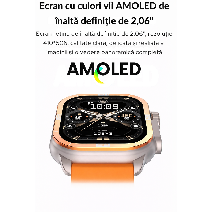 Ecranul plin de culori si touch-ul extrem de sensibil fac navigarea prin meniurile ceasului foarte usoara. Deasemenea ecranul mare de 2.06 inch face ca vizibilitatea sa fie mult imbunatatita.