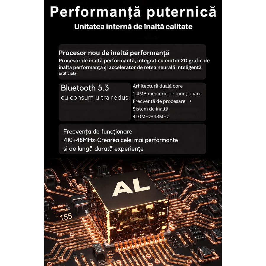 Utilizeaza tehnologia Bluetooth 5.3 pentru conectare la telefoanele cu sistem de operare Android de la 5.0 si iOs de la 10.0 in sus.