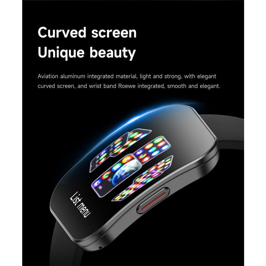 Corpul bratarii este confectionat din aliaj de zinc, cu aspect premium si dispune de senzor tactil si 1 buton fizic.
