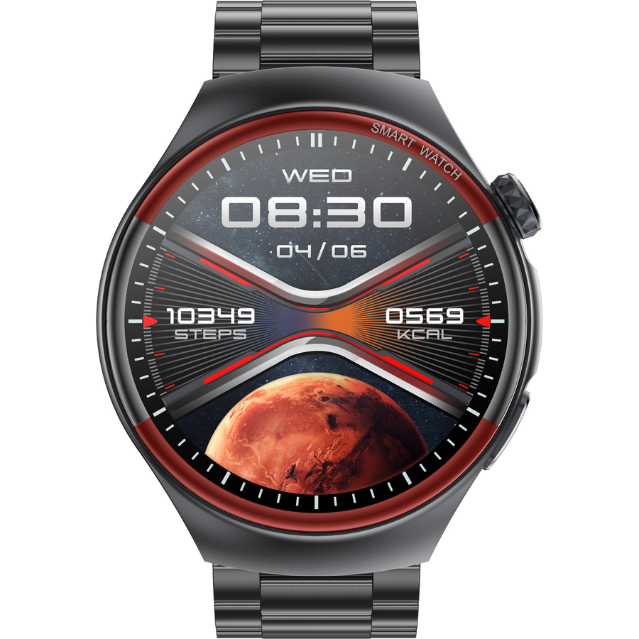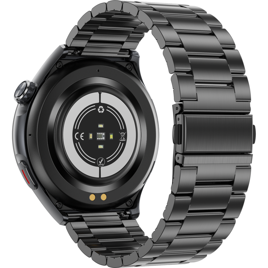Corpul bratarii este confectionat din aliaj de zinc, cu aspect premium si dispune de senzor tactil si 2 buton fizice (1 rotativ).