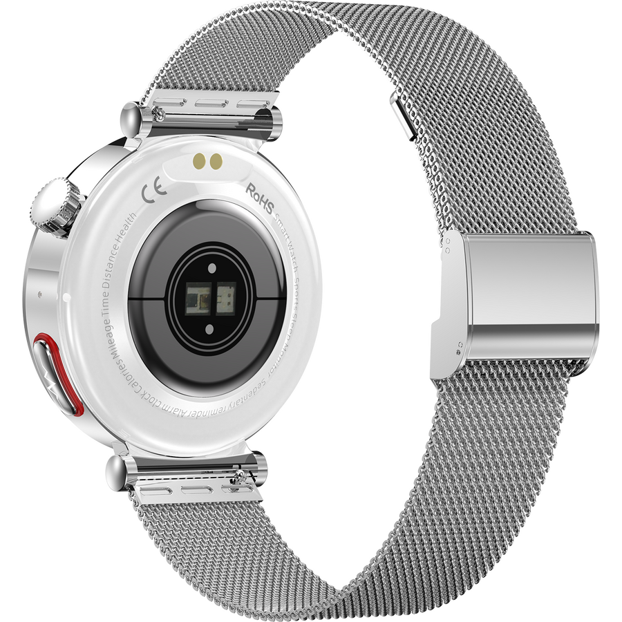 Corpul bratarii este confectionat din aliaj de zinc, cu aspect premium si dispune de senzor tactil si 1 buton fizic.
