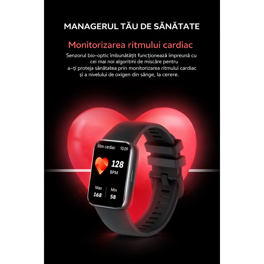 Monitorizeaza bataile inimii (BPM)Pe spatele ceasului se gaseste un senzor performant care permite masurarea ritmului cardiac