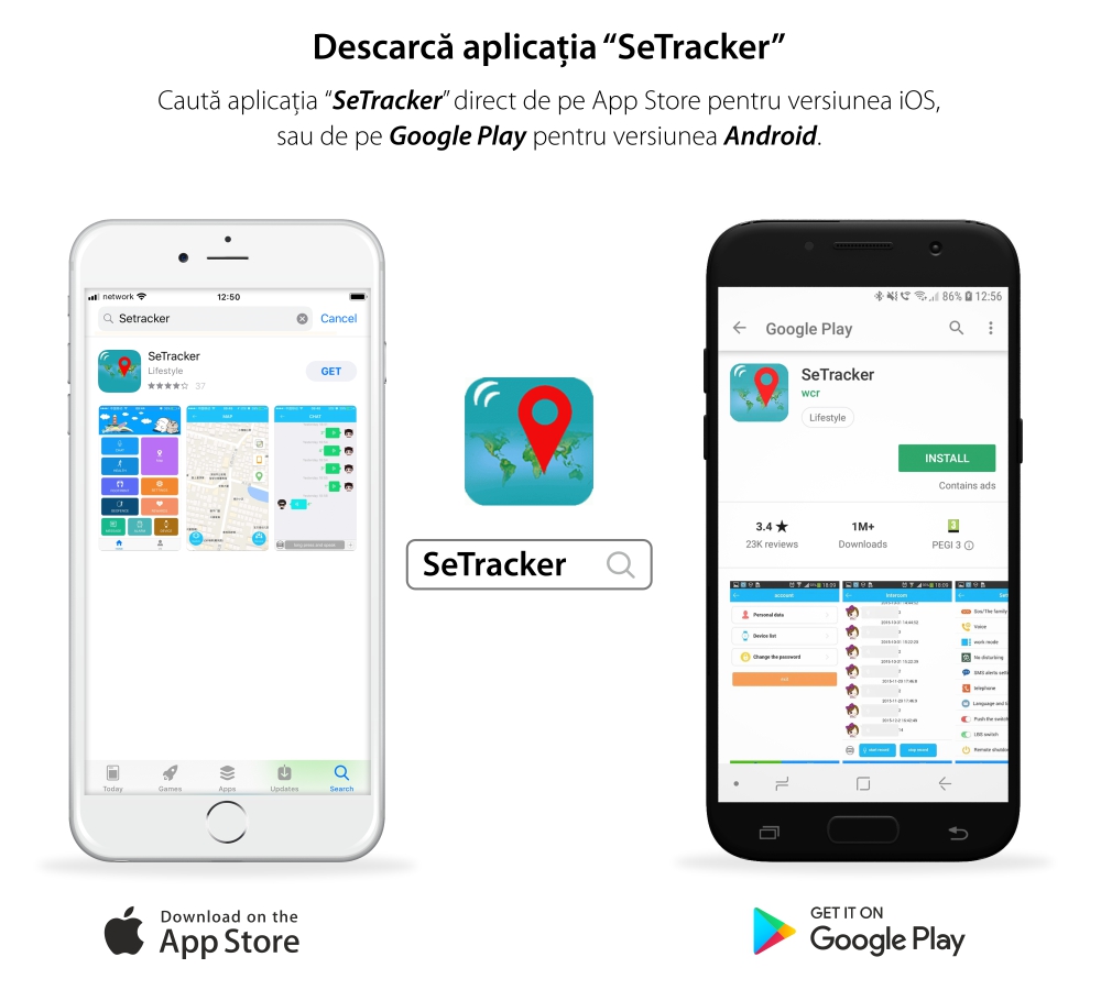 Aplicatiile SeTracker si SeTracker2 sunt disponibile pentru IOS si Android